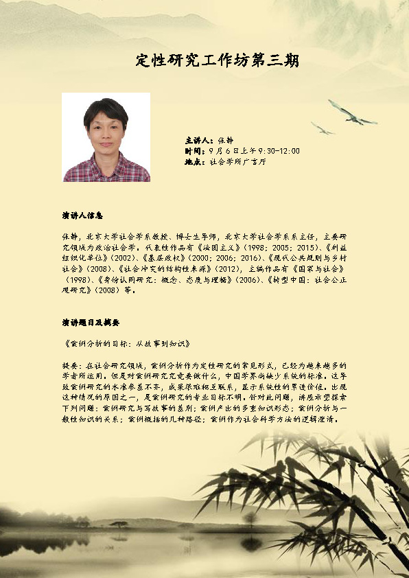 【预告】社会学所“定性研究工作坊”(第三期) 案例分析的目标:从故事到知识