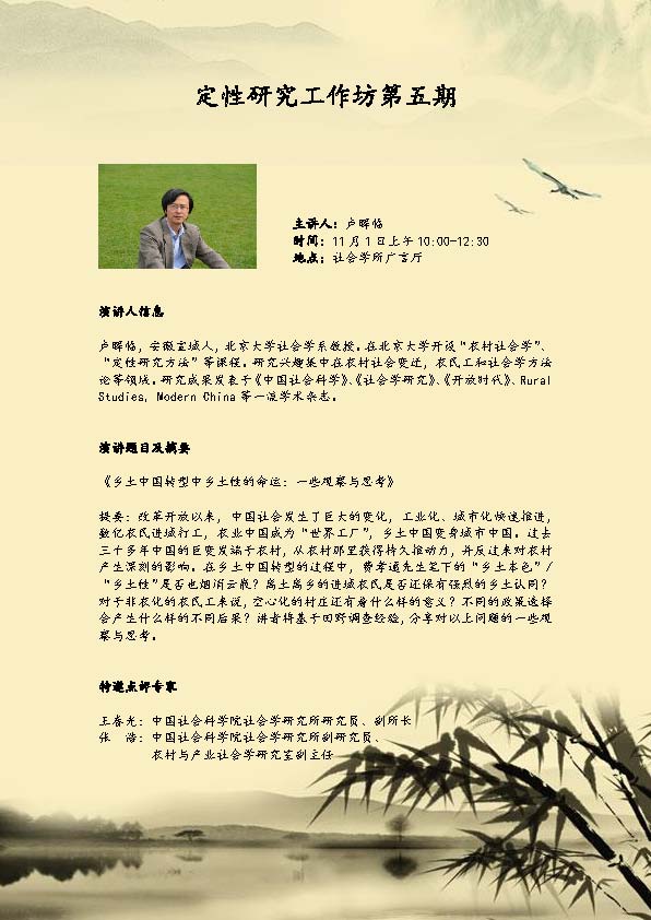 >> 【预告】社会学所“定性研究工作坊”(第五期) 乡土中国转型性的命运:一些观察与思考